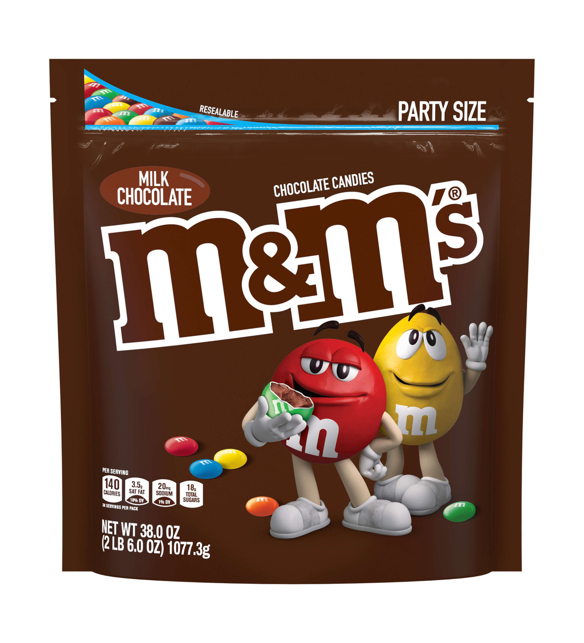 M&MS Milk Chocolate XL Resealable Stand Up Pouch, 38 Ounce, 6 Per Case